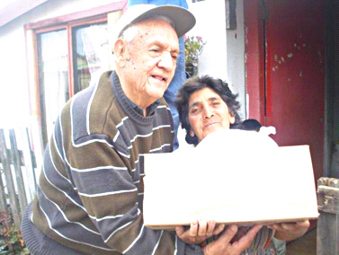 Er nahm den schweren Weg von der Hauptstadt Santiago in das ca. 500 Kilometer entfernte Coronel auf sich. Im Gepäck 14 Pakete mit Nahrungsmittel (Konserven, Mehl, Öl, Reis, Zucker, und Milchpulver).