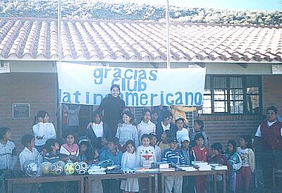 Gemäss unserer Satzung ist es unser Ziel, betroffene Regionen in Lateinamerika zu unterstützen. Da nun aber fast jede Region auf irgendeine Weise betroffen ist, wollten wir nicht warten, bis sich irgendwo eine Naturkatastrophe ereignet, um dann dort zu helfen. Es ergab sich, dass wir zu einer jungen Lehrerin aus Tarija in Bolivien Kontakt aufnehmen konnten. Nach mehreren Schriftwechseln haben wir erfahren, dass es in einem hochgelegenen Bergdorf namens Yunchara eine Schule gibt, die dringend Hilfe braucht, um den Unterricht dort aufrecht zu erhalten. Kurz gesagt – es fehlt dort an allem, angefangen von Schulbüchern, Schulheften, Stühlen, etc. Bei einer dafür eingerufenen Vorstandssitzung wurde über dieses Thema gesprochen und auch beraten. Nach kurzer Zeit stand der Beschluss fest. Wir, die Union Latinoameriana, helfen. Bei einer dafür veranstaltete Tombola, bei der viele Preise von unseren Mitgliedern gespendet wurden, erzielten wir einen Betrag von EUR 480,--. Dieser Betrag wurde direkt an die Lehrerin Carla überwiesen. Wenn wir auch dachten, dass dieser Betrag wenigstens eine kleine Hilfe für diese Schule in den Bergen ist, dann wir sind auch der Meinung, dass Bildung und Unterricht der Kinder und der Jugend ein wichtiger Bestandteil für die Zukunft einer Region, wenn nicht sogar für einen Teil des Landes sind, und waren umso mehr über die Reaktion unserer Hilfe überrascht. Nachdem Carla, die Lehrerin, die gewünschten Sachen, d.h. ausser den vielen Schulbüchern auch Zubehör für den Sportunterricht gekauft und in einer 6 stündigen, beschwerlichen Fahrt nach Yunchara gebrach hatte, war das ganze Dorf zu einer feierlichen Übergabe auf den Beinen. Die Schulkinder, deren Eltern, der Schuldirektor und Schulsprecher, ja auch der Bürgermeister ließen es sich nicht nehmen, die Hilfe der Union Latinoamericana zu würdigen und sich zu bedanken. Dies geht hervor aus den verschiedenen Briefen der Schüler, Eltern und des Bürgermeisters sowie den Fotos mit der Beschreibung des Ablaufs angefangen von der Fahrt bis zur feierlichen Übergabe der Geschenke mit Ansprachen, Gedichten und Musik. Als wir im Verein und auch im Vorstand diese Bilder gesehen haben, glaubt mir bitte alle, es gab fast niemanden, in dessen Gesicht nicht Tränen der Rührung, aber auch der Freude standen.
