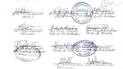 „Wir übermitteln Grüsse von der Schulleitung, dem Lehrerpersonal, den Schülern, den Schulsprechern, den Eltern der Schüler und den Behörden aus Yunchará an alle Familien (der Unión Latinoamericana) und wünschen Ihnen weiterhin viel Erfolg bei ihren Aktionen.